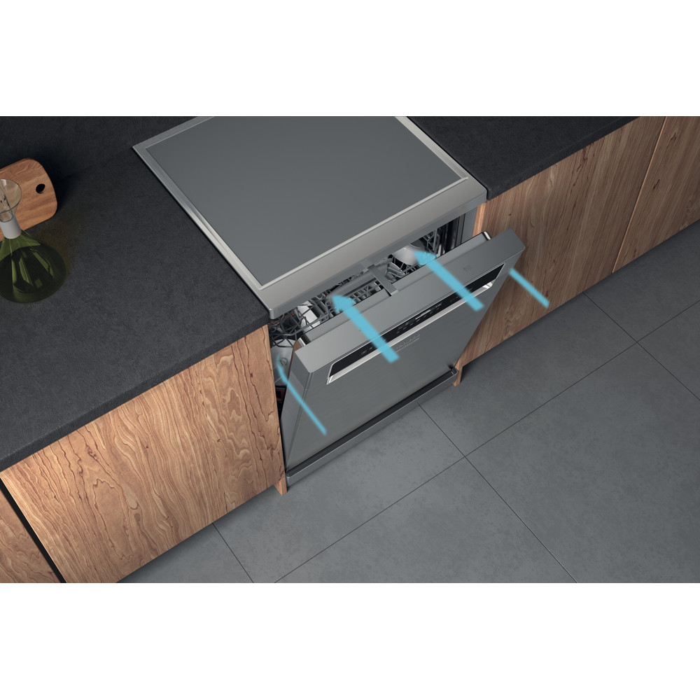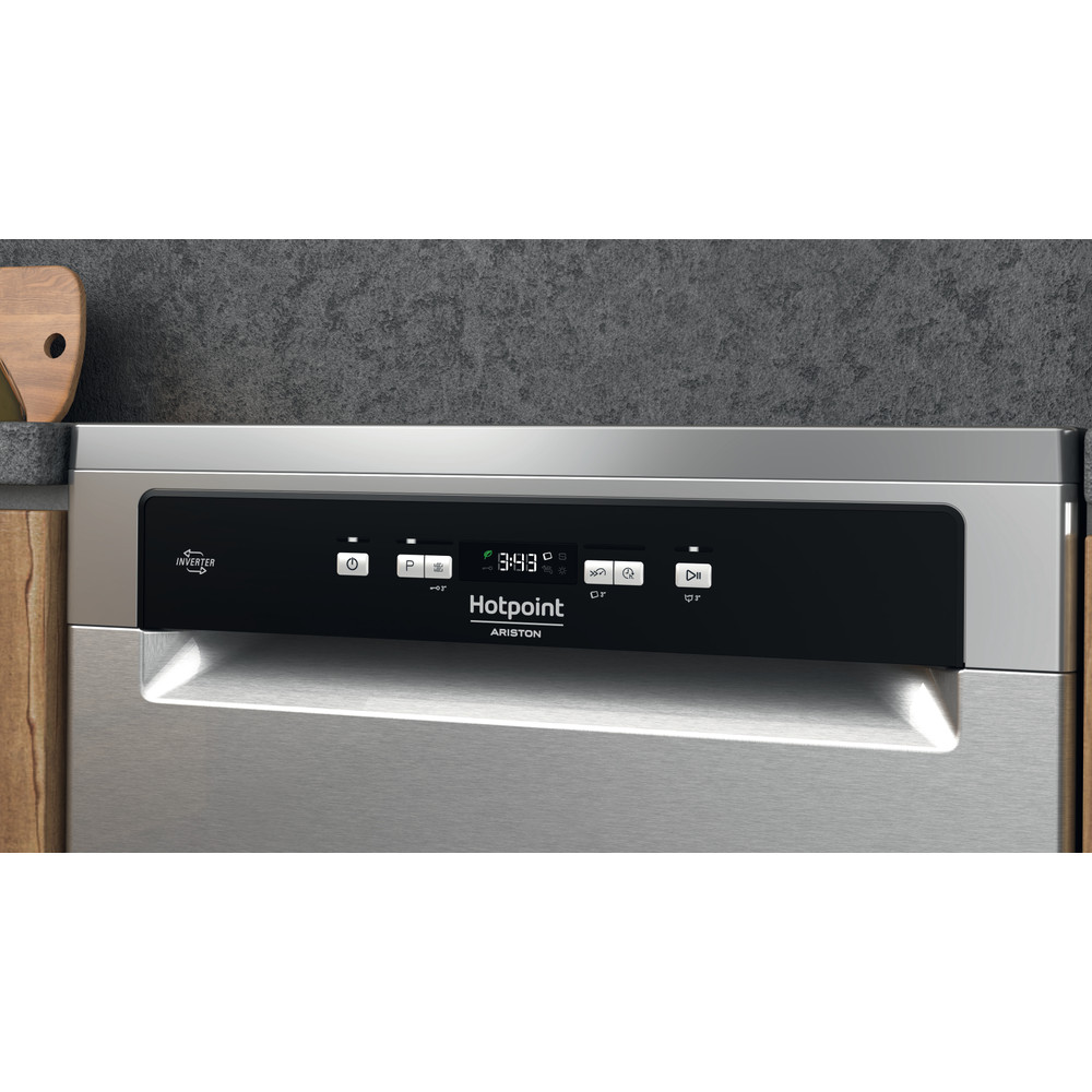 Cechy zmywarki Hotpoint: zmywarka pełnowymiarowa z wyjątkową ilością dostępnych ustawień. Wyjątkowe, zmniejszone zużycie wody. Kolor inox. Wygodny minutnik odmierzający czas do zakończenia cyklu zmywania. Regulowane stopki zapewniają idealną stabilność, nawet na nierównej powierzchni.